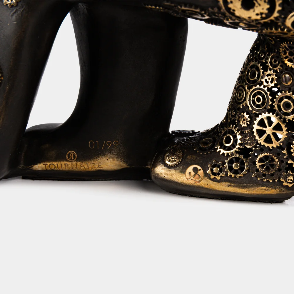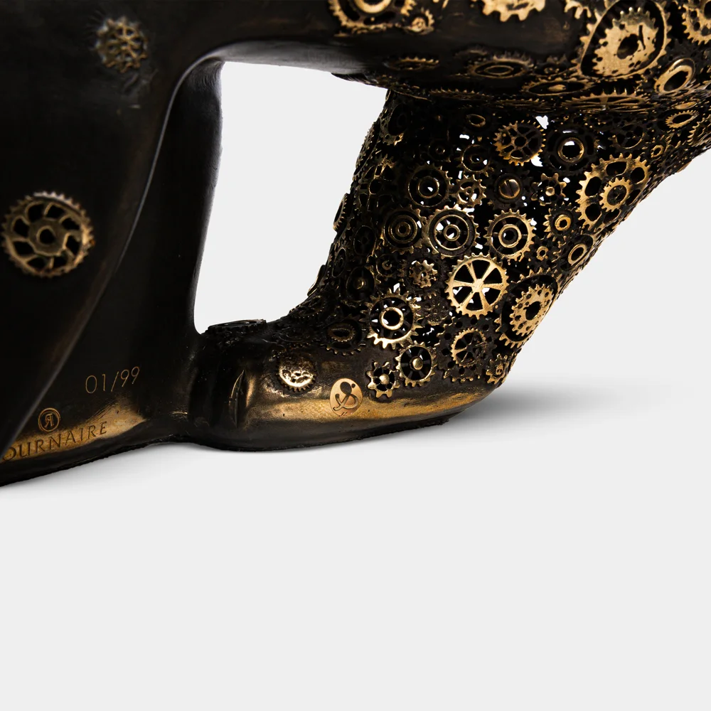 Dans cette réinterprétation contemporaine, Mathieu Tournaire insuffle à l’œuvre une âme nouvelle. Les engrenages, motif signature de la Maison, symbolisent la transmission, la mémoire et le lien invisible entre l’homme, le temps et la nature. Cette combinaison crée un langage visuel inédit, un dialogue entre la rigueur mécanique et la sensualité organique. Réalisée selon la technique ancestrale de la fonte à cire perdue, dans les ateliers de Montbrison, chaque pièce allie précision artisanale et émotion artistique. Une édition rare, entre héritage et innovation, où la main de l’homme magnifie l’intelligence de la forme.